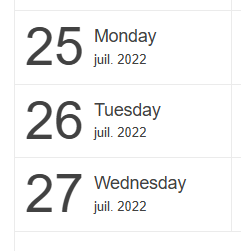 The weekdays in the Agenda view date headers are not translated in the language set by the culture.