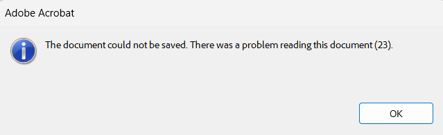 Resaving a document with Acrobat throws an error due to invalid Info dictionary in document trailer.
