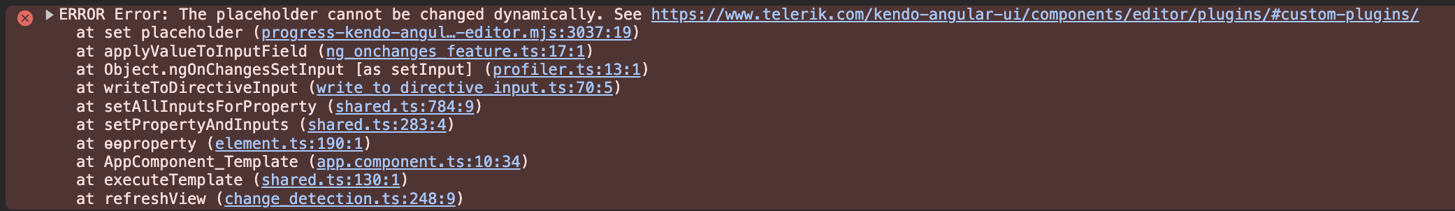 if I change the [placeholder] input on a kendo-editor, the changes are not reflected.