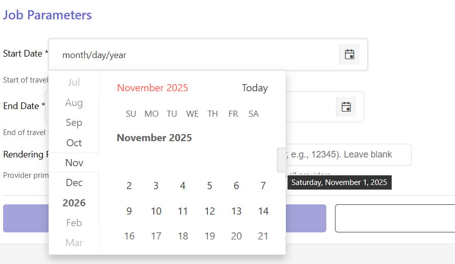 Angular Kendo Datepicker: 11/1/2025 not showing up correctly, it is off the screen