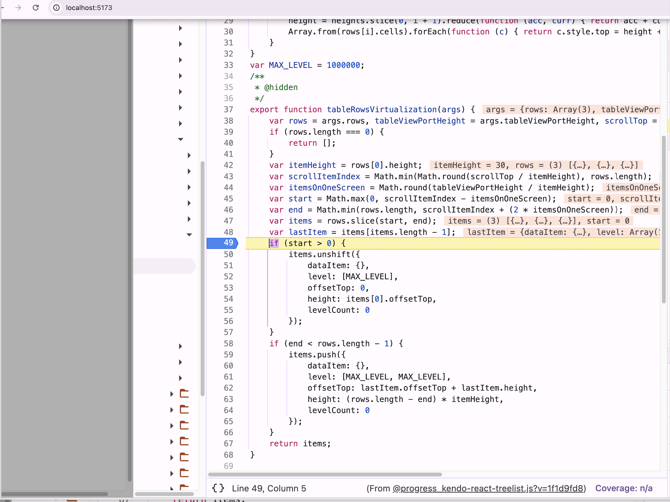 Thank you for the provided screenshot. I went through our public issues and tickets in order to see if someone else had reported the same error, however it seems that this is the first report so far. I tested the TreeList component with both version 5.10.1 and the latest one (12.0.2) in order to reproduce it, however I was not able to.
