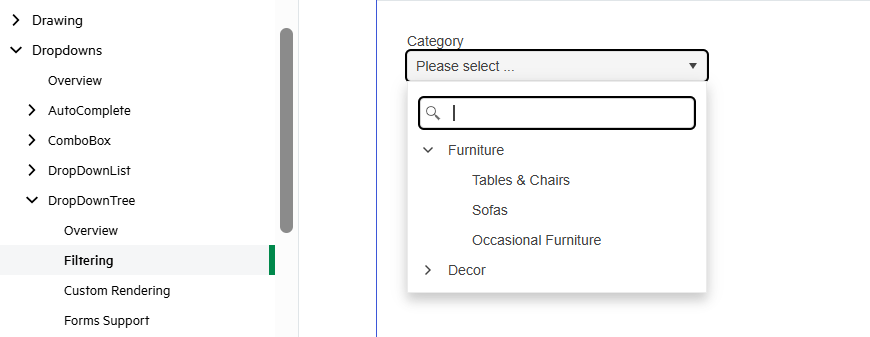 If we use dropdown tree, it's extra step to search or filter, so we add a feature of tree view for AutoComplete is good.