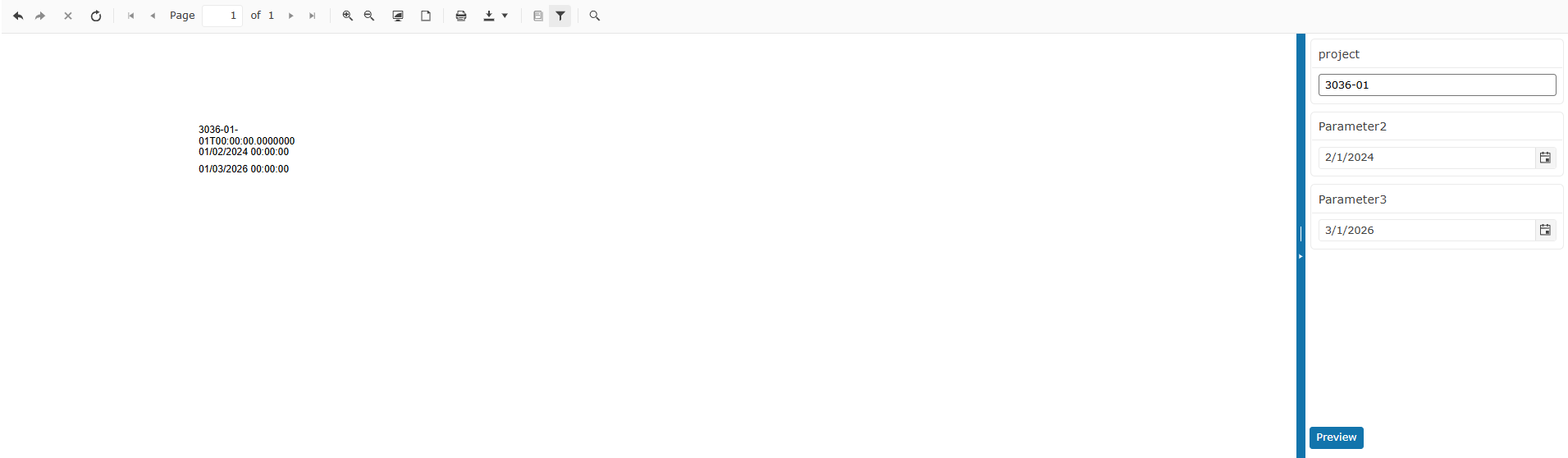 When using a report parameter of type string whose value resembles a date format (e.g., "3036-01"), the System.Text.Json serialization logic used by Telerik Reporting incorrectly treats the value as a date instead of a plain string. As a result, the parameter is serialized and displayed as a parsed DateTime value rather than the original text, leading to unexpected outputs such as "3036-01-01T00:00:00.0000000":